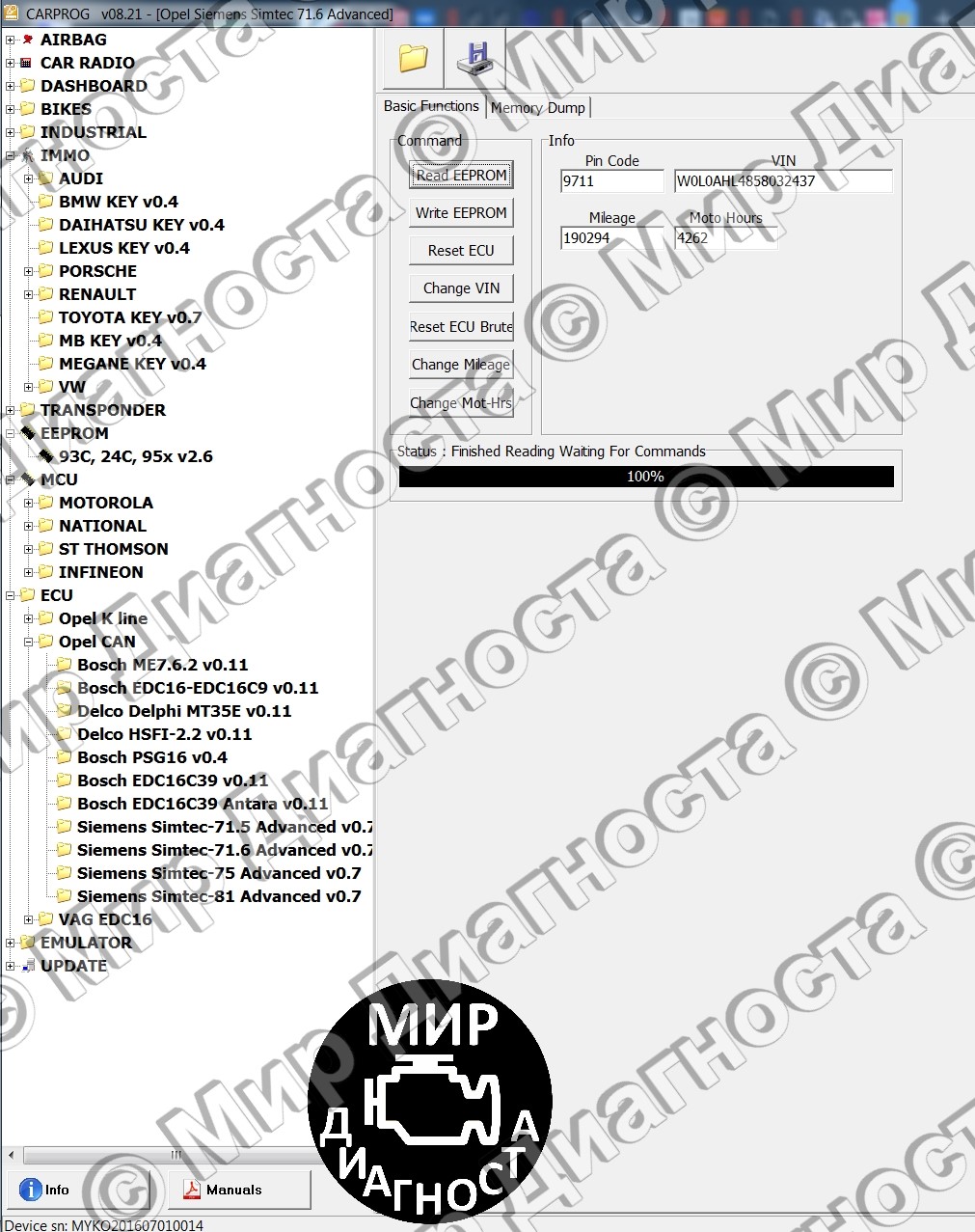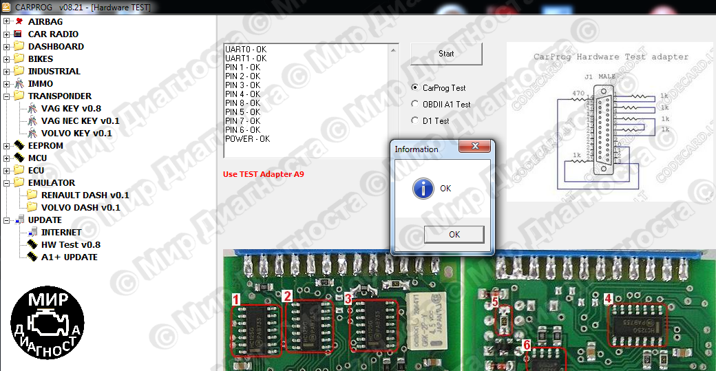 Программатор CarProg был разработан как универсальный инструмент для работы с одометрами, блоками Airbag, блоками управления двигателя, автомагнитолами, программирования EEPROM и изготовления дополнительных ключей.
