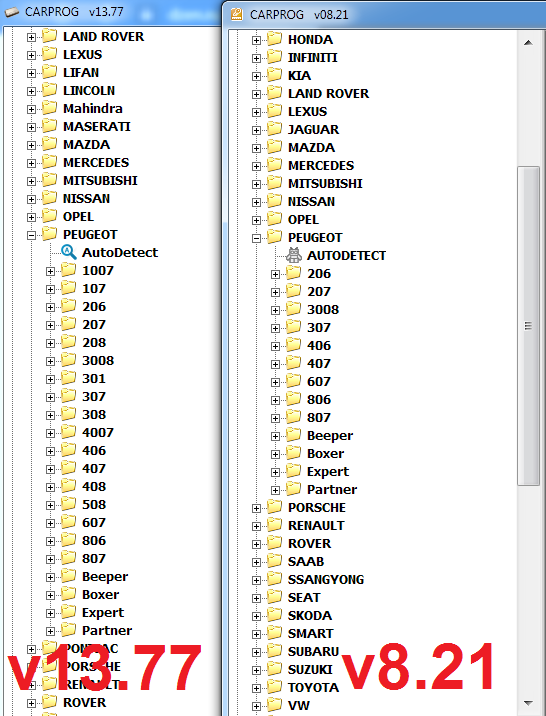 CarProg с полностью доработанной платой и адаптерами поддерживает все версии: